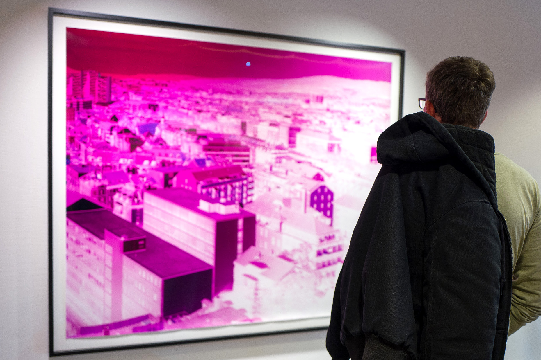 In einer Zeit, in der sich digitale Bilder per Mausklick kopieren, verbreiten oder löschen lassen, kehrt die Künstlerin zu einer Fotografie zurück, die Zeit, Raum und Material in Anspruch nimmt. Andrea Good arbeitet ohne Fotoapparate, ohne optische Linsen – sie zeichnet mit Licht. Das Resultat sind Unikate auf zum Teil grossformatigen Fotopapieren, die heute kaum mehr hergestellt werden. Die Ausstellung in der Universitätsklinik Balgrist vereint in einem pointierten Überblick verschiedene Werkgruppen der vergangenen zehn Jahre: Zürcher Stadtlandschaften, die in verdunkelten Büroräumen des Hochhauses Werd mit Belichtungszeiten von beinahe einer Stunde aufgenommen wurden sowie ornamentale Detailansichten eines von Pflanzen überwucherten Industrieareals. Für ihre neueste Arbeit verwandelte Andrea Good Tischdecken und Servietten in schwerelos schwebende Wolken und bunte Kaleidoskope.